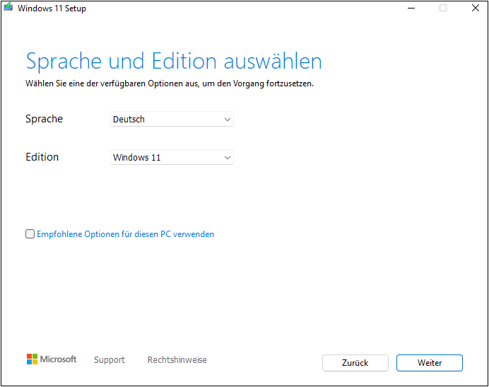 Schritt 4. Wählen Sie die Sprache, Edition und Architektur (64-Bit oder 32-Bit) für das Windows-System, und dann Ihr bevorzugtes Medium.