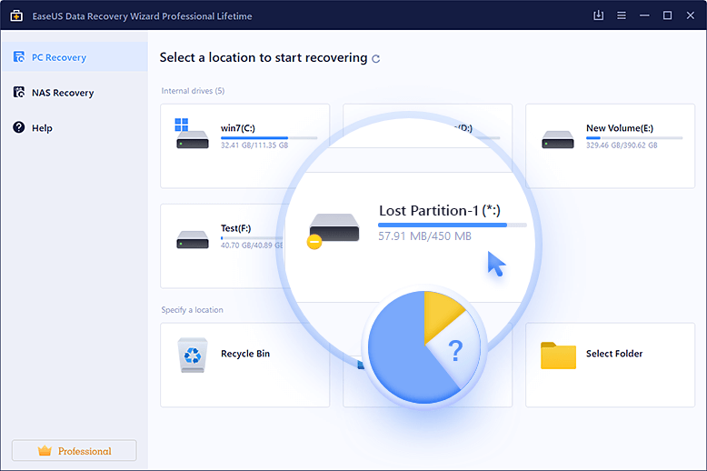 EaseUS Data Recovery Wizard Pro ist eine der leistungsstarken Datenrettungssoftware. Sie können die gelöschten und anderen verlorenen Daten von einem PC oder einem Laptop in verschiedenen Fällen einfach wiederherstellen.