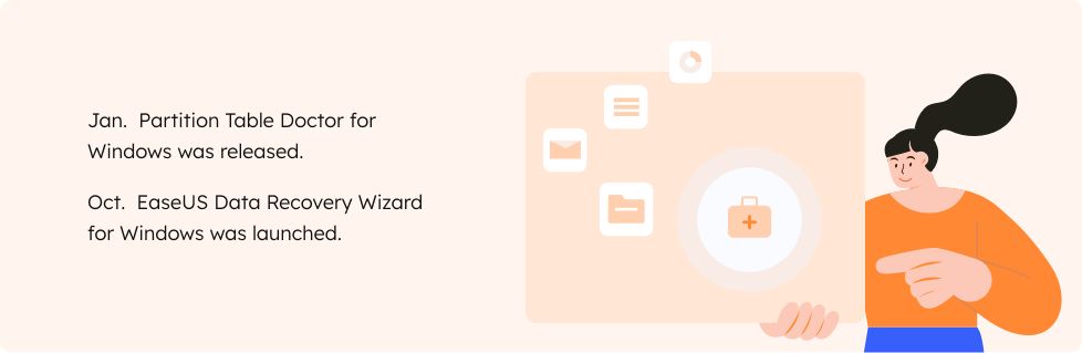 Im Jahr 2003 brachten wir unser erstes Datenrettungsprodukt auf den Markt - „EaseUS Partition Table Doctor for Dos“, ein Tool, das Laufwerksfehler automatisch diagnostiziert und behebt, ohne dass Hardwareausfälle erforderlich sind, und das Probleme mit dem Master Boot Record, der Partitionstabelle und dem Bootsektor effektiv repariert.
