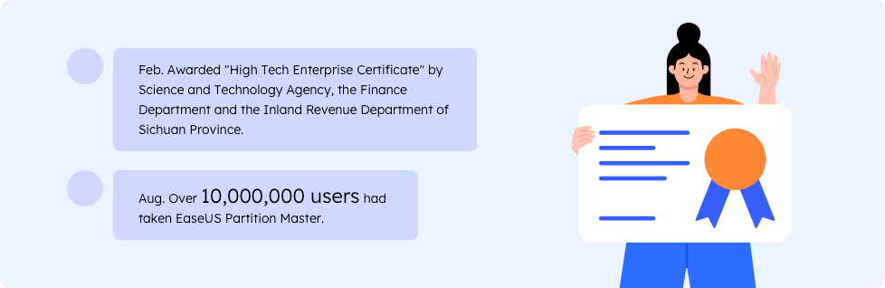 EaseUS Partition Management Lösungen >>Im Jahr 2007 erlangten wir Anerkennung in der Fachwelt, was uns viel Selbstvertrauen für die weitere Erforschung des Softwarebereichs gab.