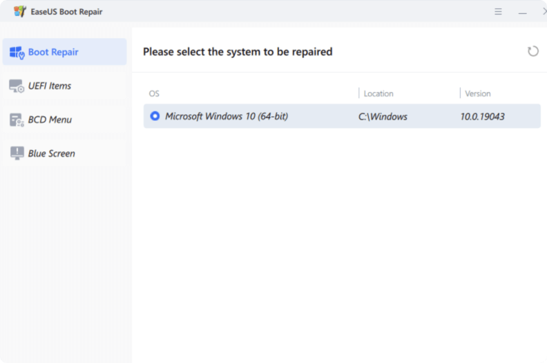 Mit dem Tool können Sie eine bootfähige USB/CD erstellen, um verschiedene Boot-Fehler und Startprobleme zu beheben, wie z. B. den schwarzen/blauen/weißen Bildschirm des Todes. Es ermöglicht Benutzern, Boot-Probleme zu beheben und die Funktionalität Ihres Systems wiederherzustellen, ohne dass komplexe manuelle Korrekturen oder Datenverluste erforderlich sind.