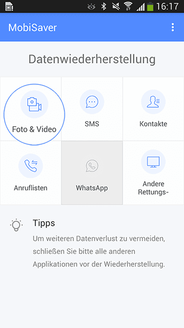 > MobiSaver for Android APP Support > Android Fotod und Videos wiederherstellen
