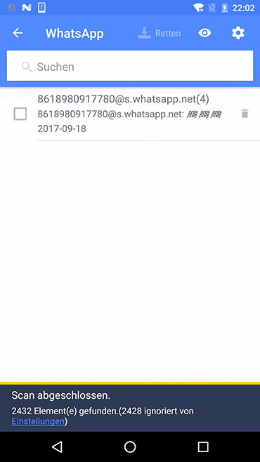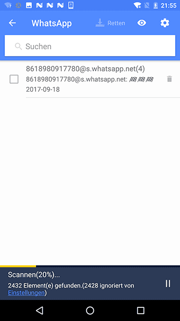 Schritt 2. Während des Scanvorgangs werden der Name und die Uhrzeit der gefundenen Whatsapp-Nachrichten angezeigt. Es ist einfach zu prüfen, ob die gefundenen Whatsapp-Nachrichten gewünscht sind.